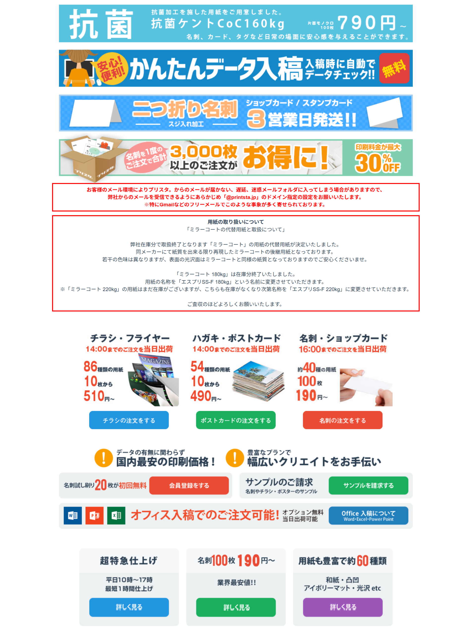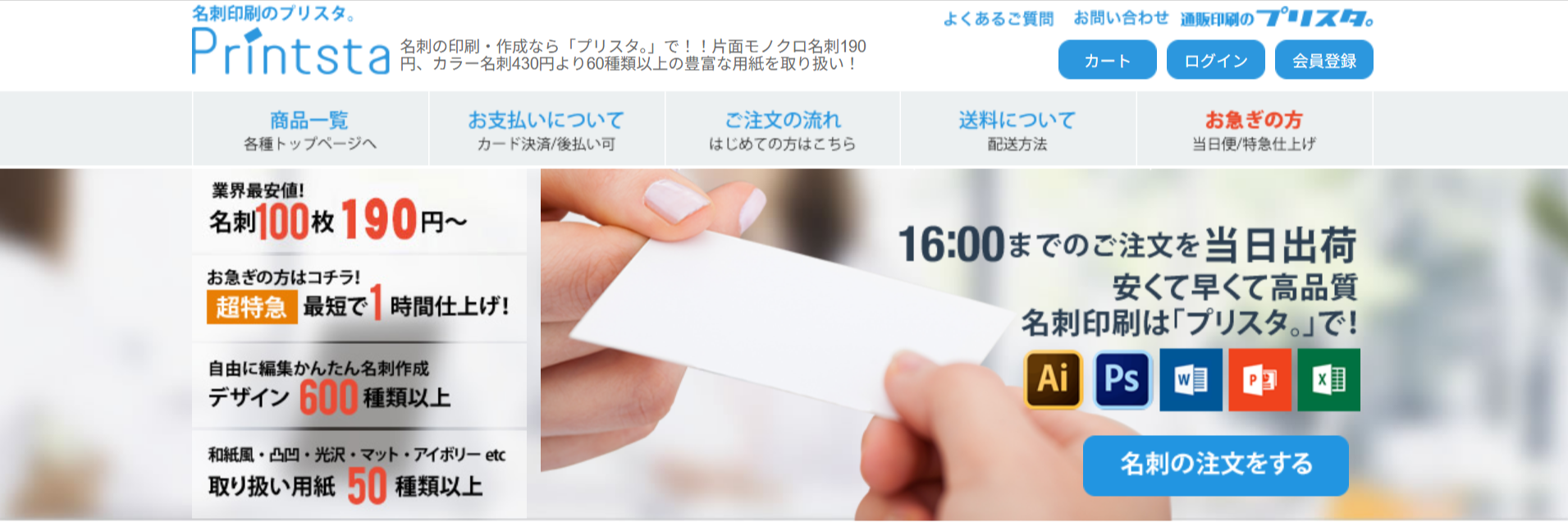 1.名刺印刷が低価格の100枚190円〜にて印刷可能